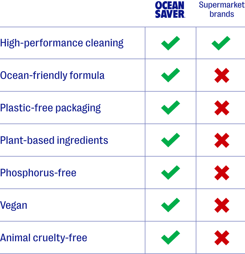 We design our products to clean as well as the leading brands without harming Ocean life.